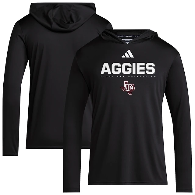 Men's adidas Black Texas A&M Aggies 2025 AEROREADY Sideline Training Long Sleeve Hooded T-Shirt