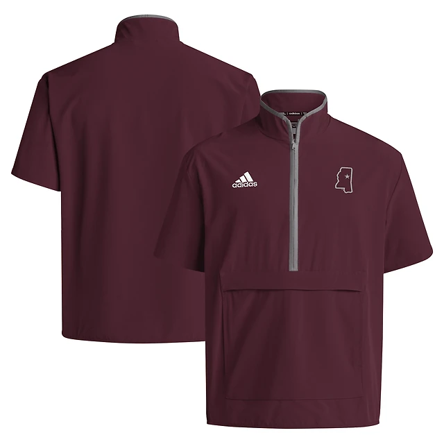 Men's adidas Maroon Mississippi State Bulldogs 2024 Coaches Sideline Half-Zip Short Sleeve Jacket