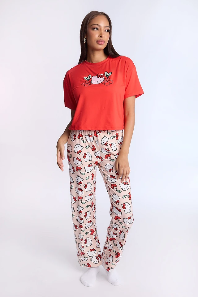 Hello Kitty Cherry Super Soft Pajama Tee And Pants 2-Piece Set