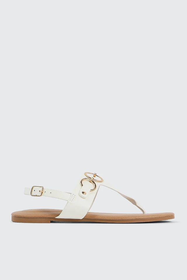 Ardene T-Strap Flat Sandals with Ring Details in Beige | Size | Faux Leather | Eco-Conscious