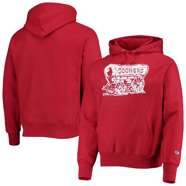 Men's Champion Crimson Oklahoma Sooners Vault Logo Reverse Weave Pullover Hoodie