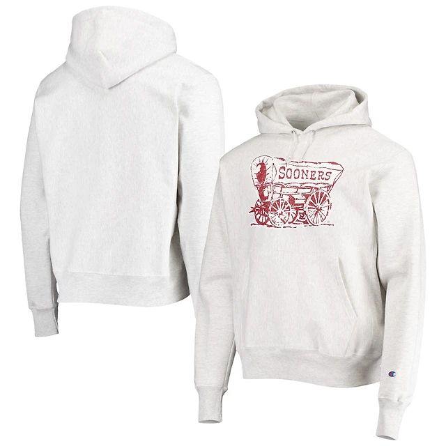 Men's Champion Heathered Gray Oklahoma Sooners Team Vault Logo Reverse Weave Pullover Hoodie