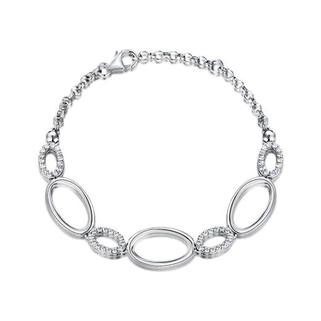 Sterling Silver Cubic Zirconia Oval Bracelet