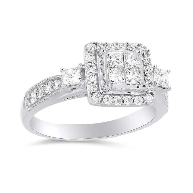 10K White Gold 1.00CTW Three-Stone Bridal Ring