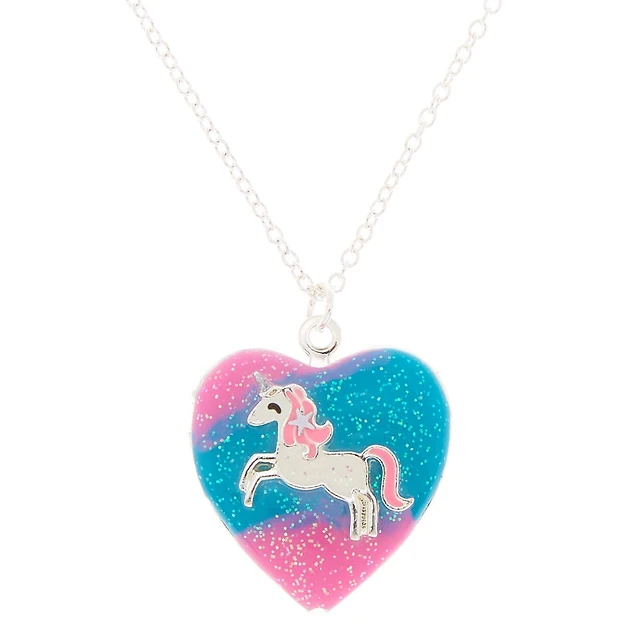 Silver Pastel Unicorn Heart Locket Pendant Necklace