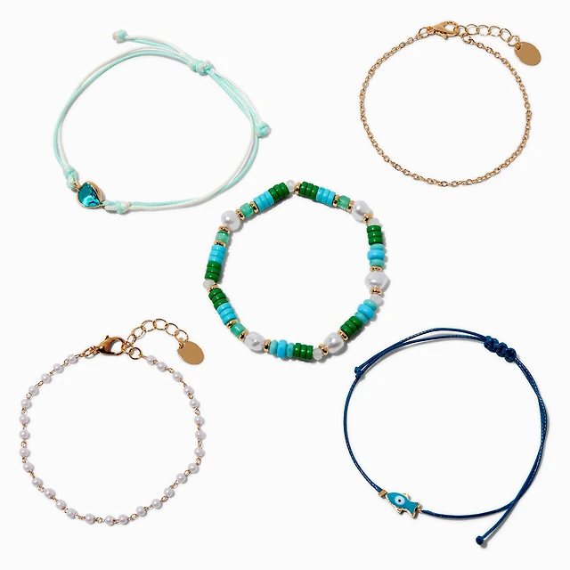 Turquoise Fish & Seashell Bracelet Set - 5 Pack