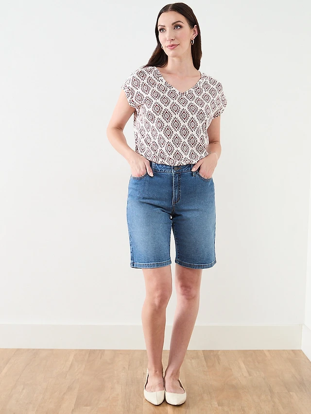 Short Sleeve V-Neck Textured Relaxed Fit Top