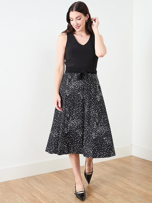Sleeveless Fit & Flare Dress in Black/White Dot