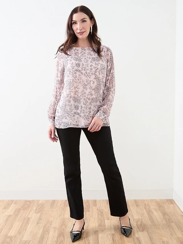 Petite Long Sleeve Button-Cuff Chiffon Blouse