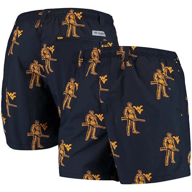 Men's Columbia Navy West Virginia Mountaineers PFG Backcast II Omni-Shade Hybrid Shorts