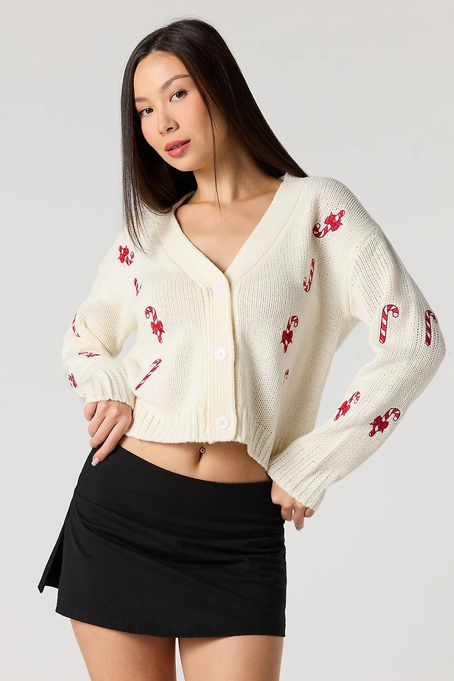 Nature Embroidered Off Shoulder Fleece Sweatshirt