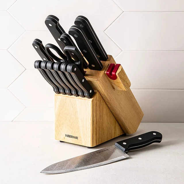 Farberware Self Sharp Wood Knife Block Combo - Set of 14 (Natural)