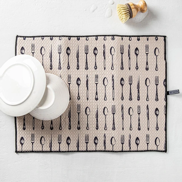 Harman Printed 'Vintage Cutlery' Microfibre Dish Drying Mat 15x20"