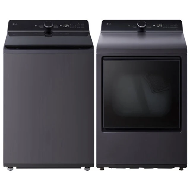 LG 6.1 Cu. Ft. High Efficiency Agitator Top Load Washer & 7.3 Cu. Ft. Rear Control Electric Dryer - Matte Black