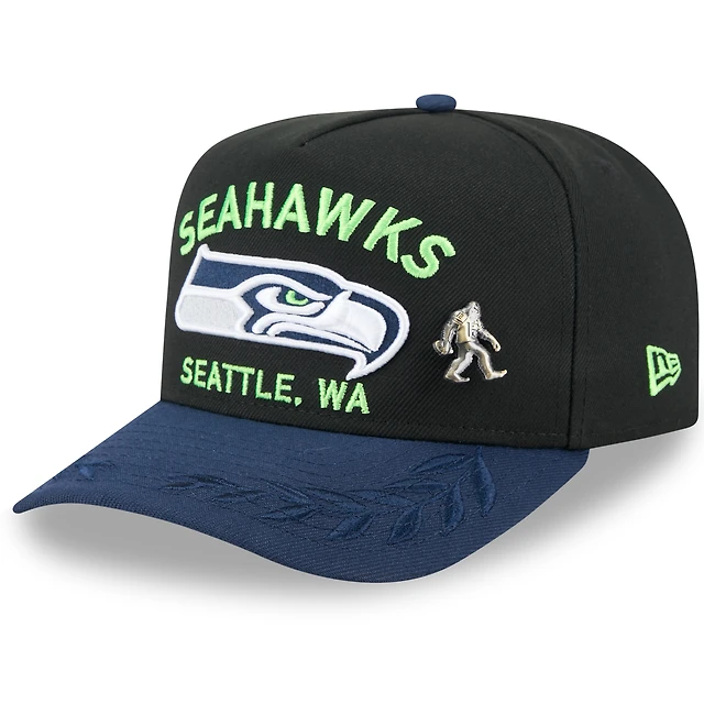 Men's New Era Black/College Navy Seattle Seahawks 2025 NFL Draft On Stage A-Frame 59FIFTY Fitted Hat