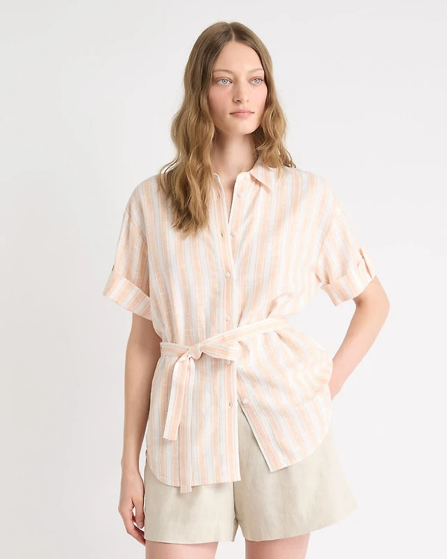 Extended-Sleeve Crew-Neck Linen-Blend Top