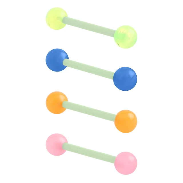 Multi-Pack Glow in the Dark Bioflex Barbells 4 Pack – 14 Gauge