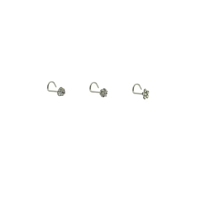 Multi-Pack Clear Gem Heart Star Flower Screw Nose Rings - 3 Pack