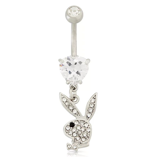 CZ Pink Playboy Bunny Cut Out Dangle Belly Ring - 14 Gauge