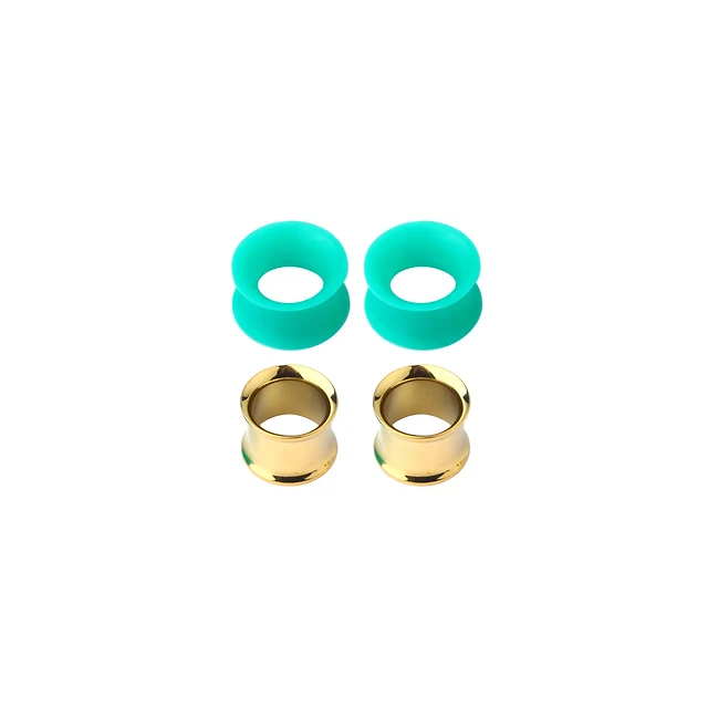 Teal and Goldplated Tunnel Plugs 4 Pack - 00 Gauge