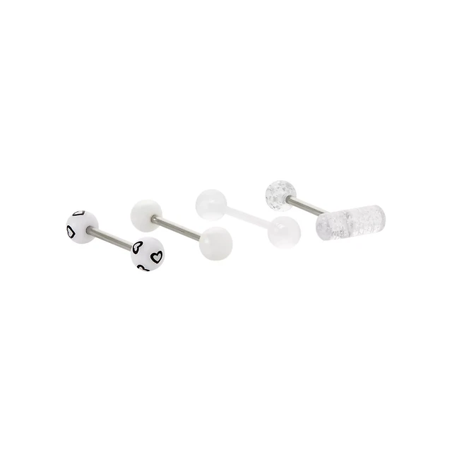 Multi-Pack Silver and Clear Glitter Pill Barbells 4 Pack - 14 Gauge