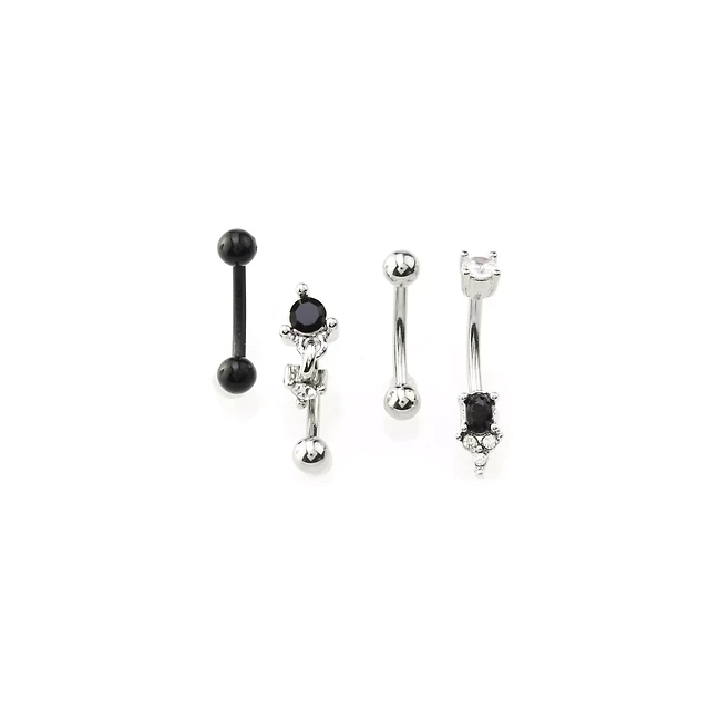 Multi-Pack CZ Black and Silvertone Curved Barbells 4 Pack - 16 Gauge