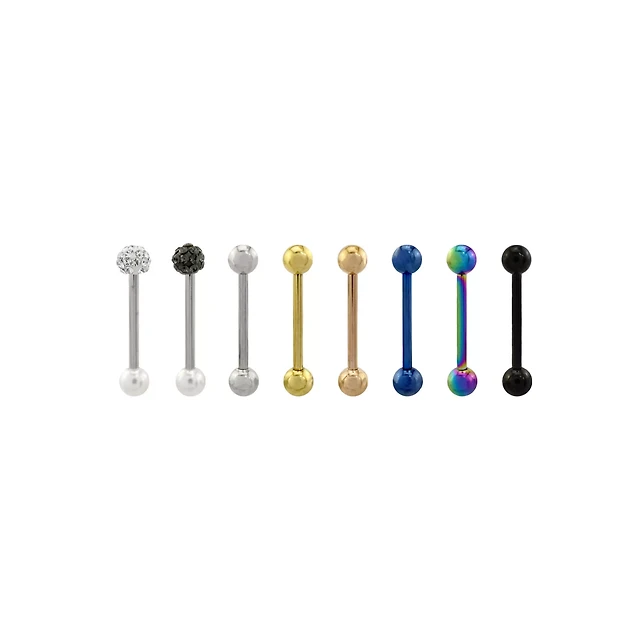 Multi-Pack Silvertone Goldtone Multi-Color and Black Barbells 8 Pack - 14 Gauge
