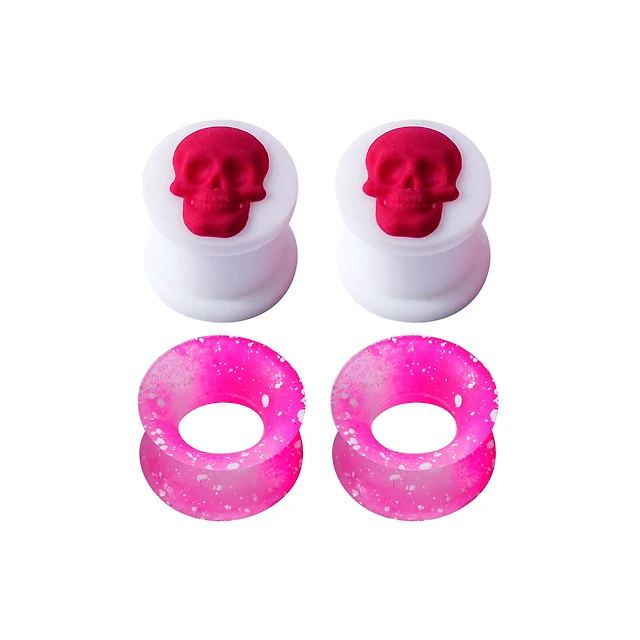 White and Pink Silicone Skull Tunnels - 2 Pairs