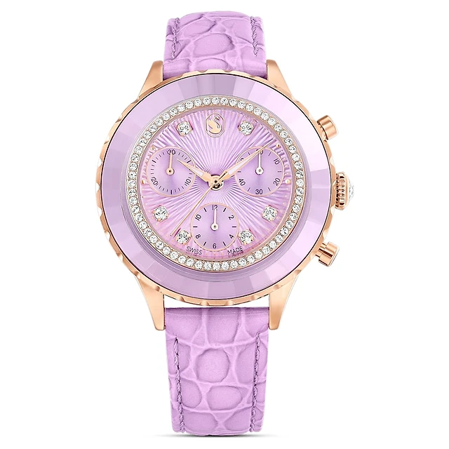Octea chrono watch, Swiss Made, Leather strap, Purple, Rose gold-tone finish by SWAROVSKI