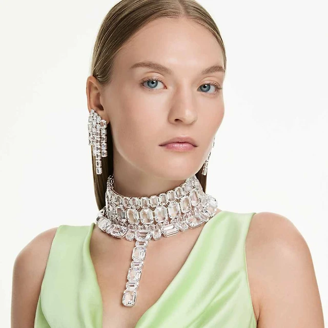 Matrix Y necklace, Round cut, White, Rhodium plated by SWAROVSKI
