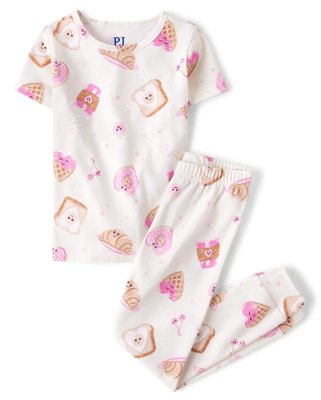 Girls Breakfast Hearts Snug Fit Cotton Pajamas