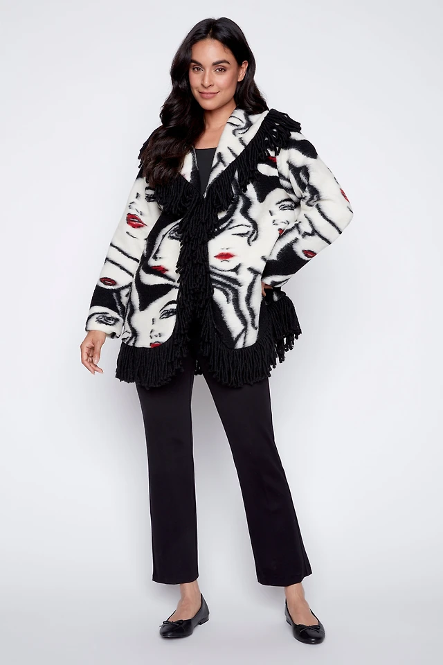 Contrast trim eyelash blazer
