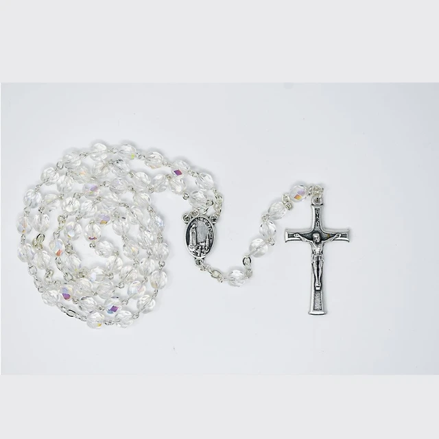 8mm Clear Crystal Bead Fatima Rosary Boxed