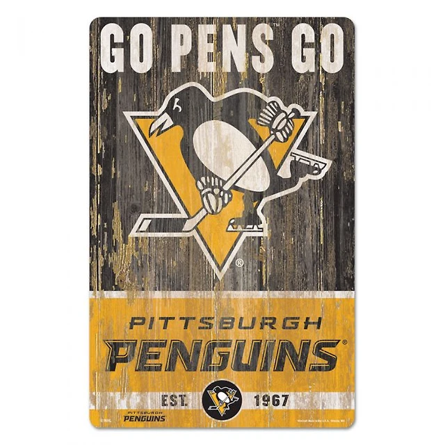 Pittsburgh Penguins Slogan Wood Sign 11" x 17" 1/4" Thick