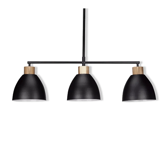 3-Bulb Metal and Wood Ceiling Lamp