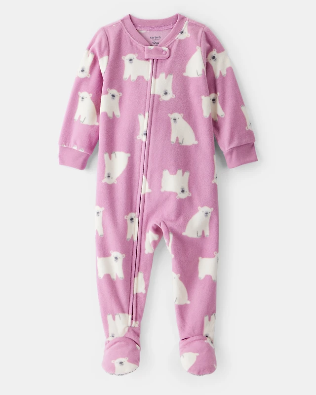 Baby Girl Polar Bear Loose Fit Long-Sleeve 2-Way Zip 1-Piece Pyjamas - Pink