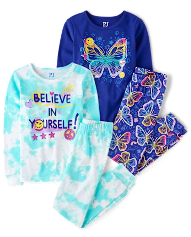 Girls Butterfly Believe Snug Fit Cotton Pajamas 2-Pack