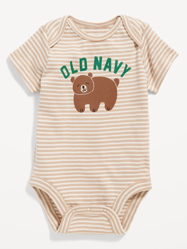 Printed Unisex Short-Sleeve Ribbed Bodysuit for Baby