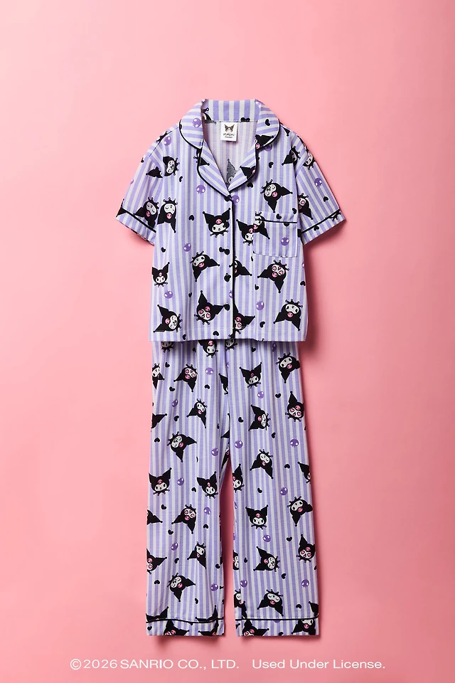 Kuromi™ Girls Printed Button-Up Top & Pant Pajama Set