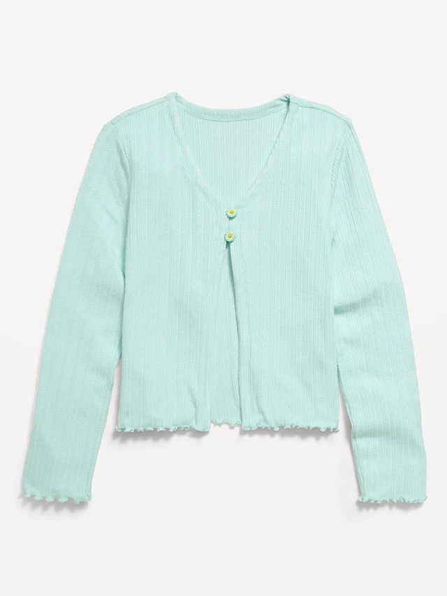 Pointelle-Knit V-Neck Cardigan for Girls
