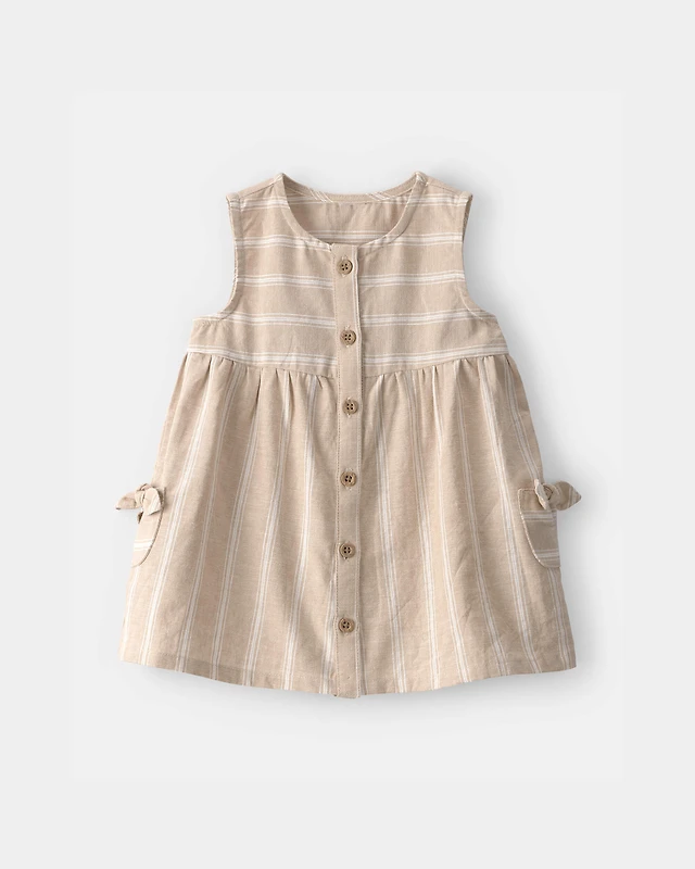 Baby Girl Stripe Sleeveless Dress - Khaki/Ivory
