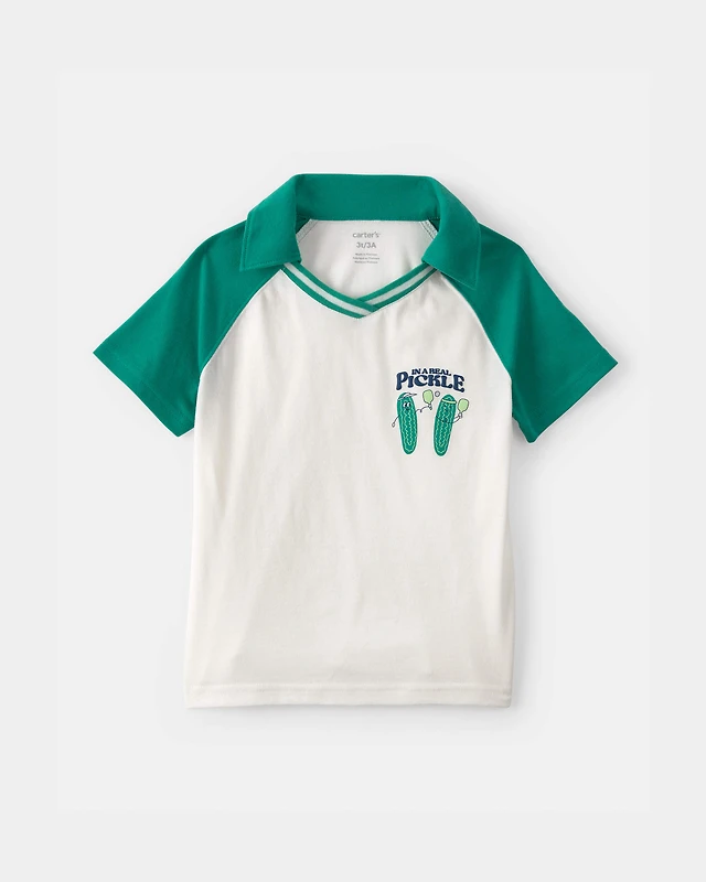 Toddler Boy Pickleball Polo Shirt - Green/Ivory