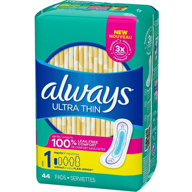 Always Ultra Thin Pads Size 1 Regular Absorbency Unscented without Wings, 44 Count