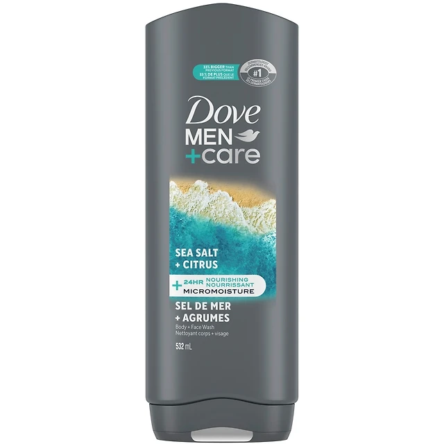 Dove Men+Care Body and Face Wash for Men, Exfoliating Sea Salt + Citrus with 24-Hour Nourishing Micromoisture Technology, 532 ml