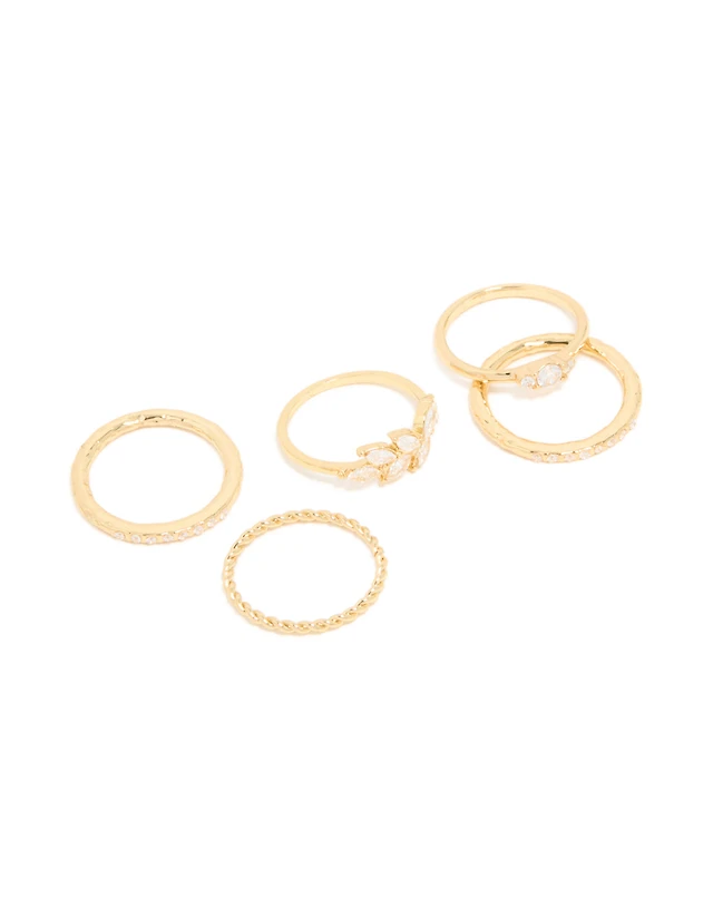 Gold Plated Cubic Zirconia Vine Mixed Rings 5-Pack