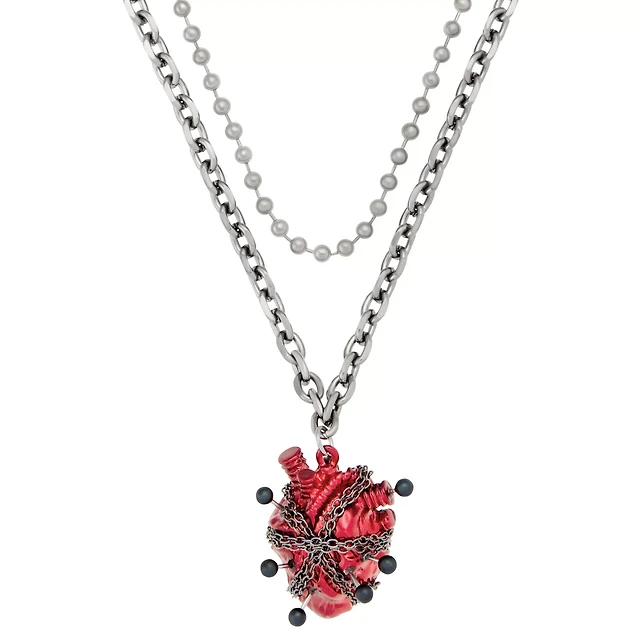 Multi-Pack Chained Anatomical Heart Necklaces - 2 Pack