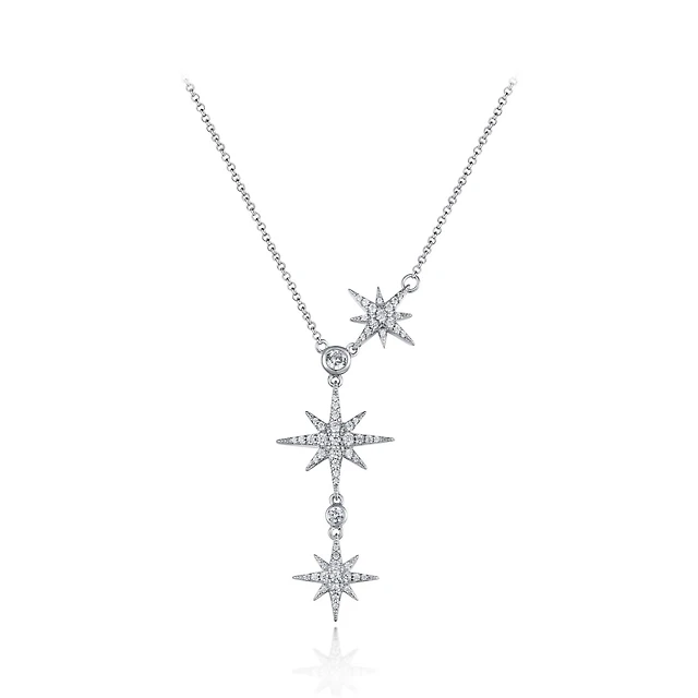 Short Silver Necklace with Genuine Crystal