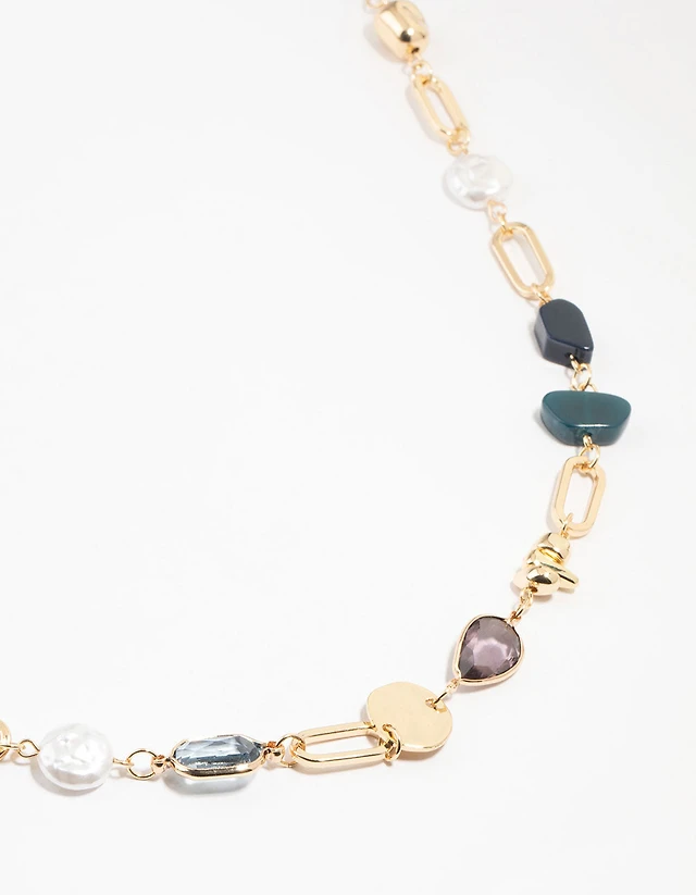 Gold Organic Stone Station Necklace
