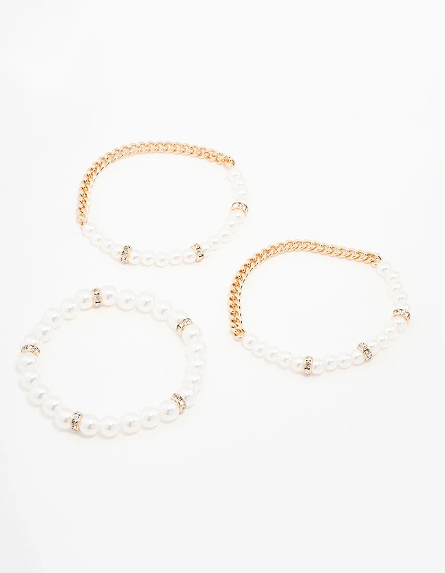 Gold Beaded Pearl Stretch Bracelet Pack