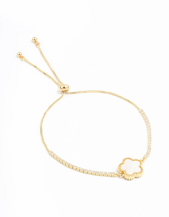 Gold Plated Mini Cubic Zirconia Flower Toggle Bracelet